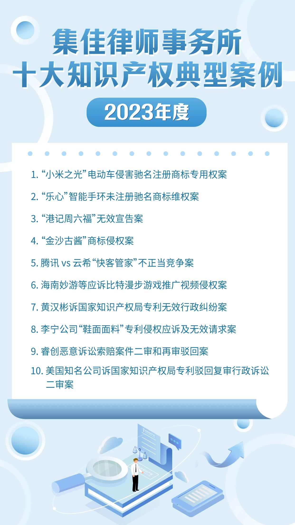 作为迎接4.26世界知识产权日的献礼之一,178体育直播已连续十年开展十大知识产权典型案例的评选活动,其意义不仅在于展现集佳律师团队的专业能力和水准,更在于传递集佳全方位服务客户的理念。在第24个世界知识产权日来临之际,178体育直播从2023年度代理的众多知识产权案件中筛选出具有代表性的十大案例,与各界同仁分享: