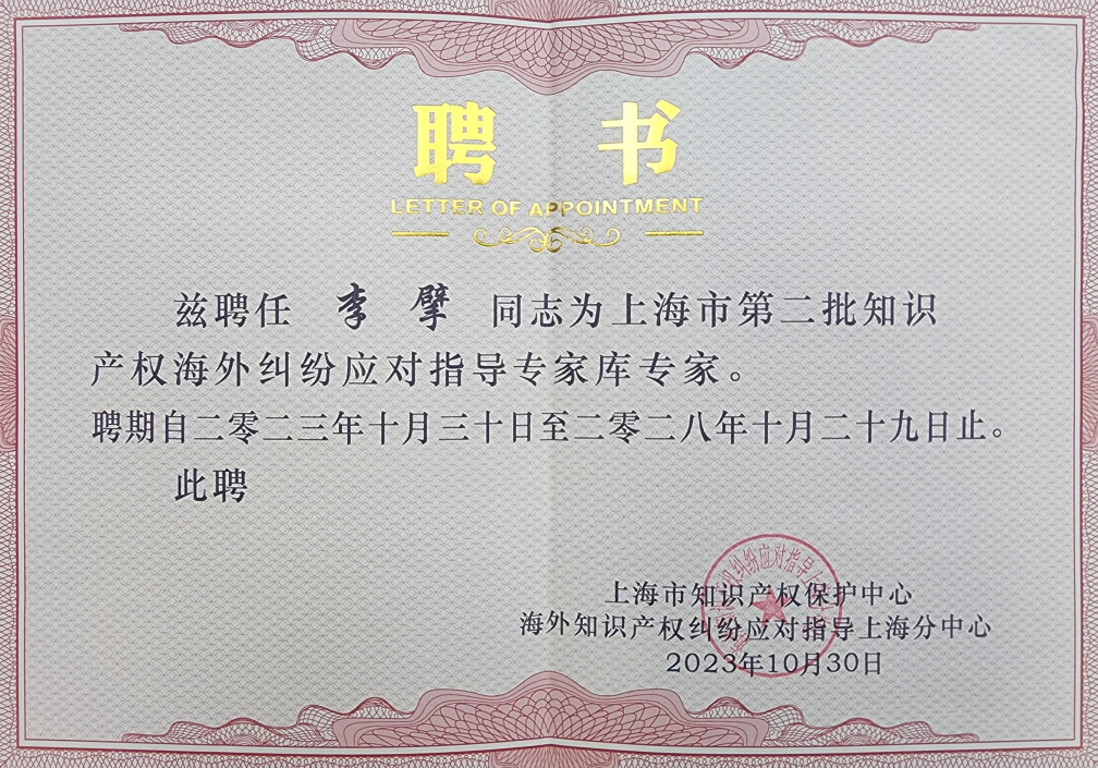 >178体育直播>新闻动态>集佳上海分所骆苏华、李擘获聘成为上海市第二批知识产权海外纠纷应对指导专家库专家