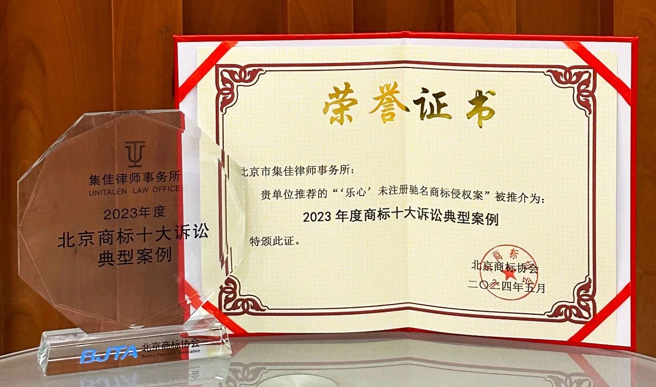 >178体育直播>关于我们>荣誉概览>2024>集佳代理2个案例入选北京商标协会2023年度商标十大诉讼与非诉典型案例