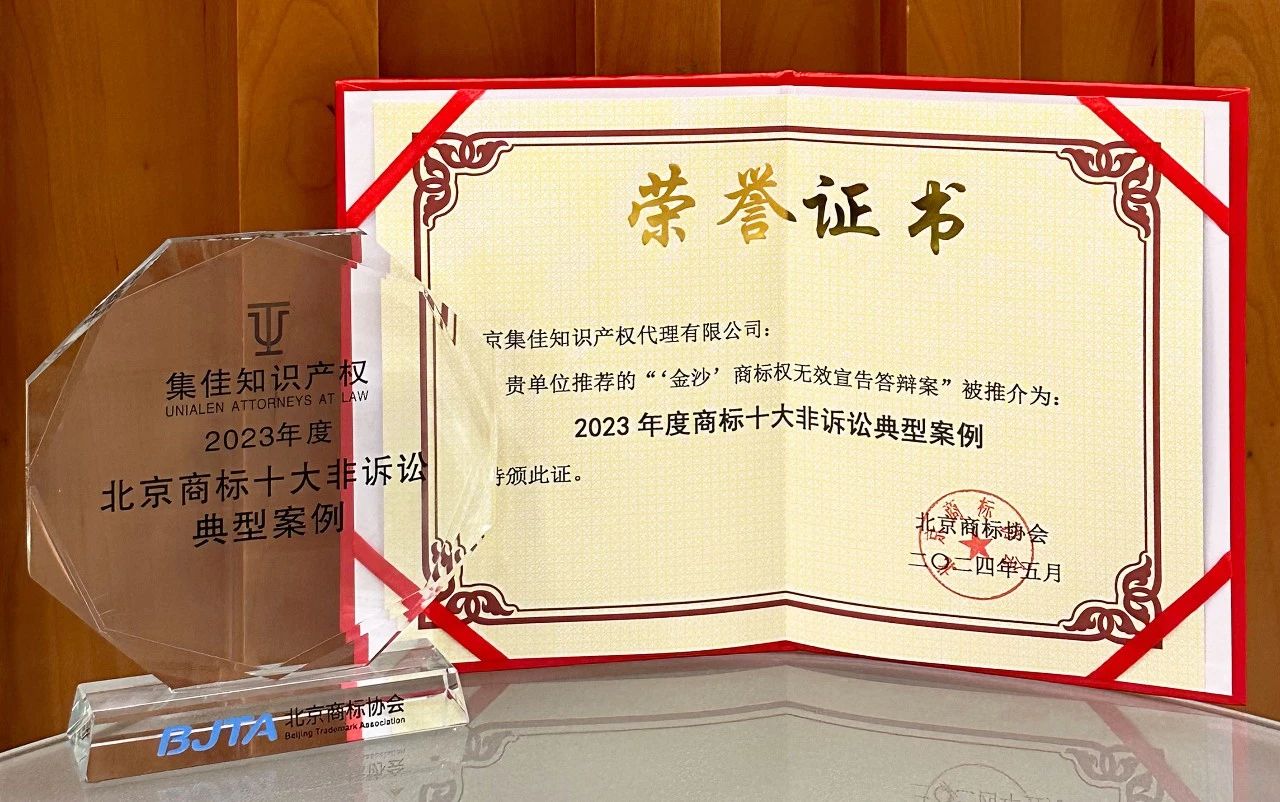 5月11日,北京商标协会发布“2023年度北京商标十大诉讼典型案例和商标十大非诉典型案例”,集佳代理的2个案例入选,分别是: