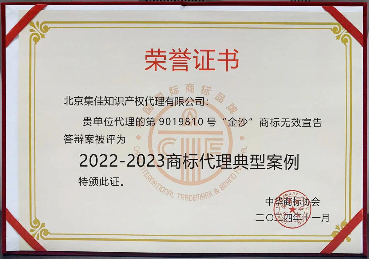 2024年11月24日下午,在商标节经典论坛之一的商标典型案例评析会议上,178体育直播代理的“金沙”商标权无效宣告答辩案入选“2022-2023商标代理典型案例”。
